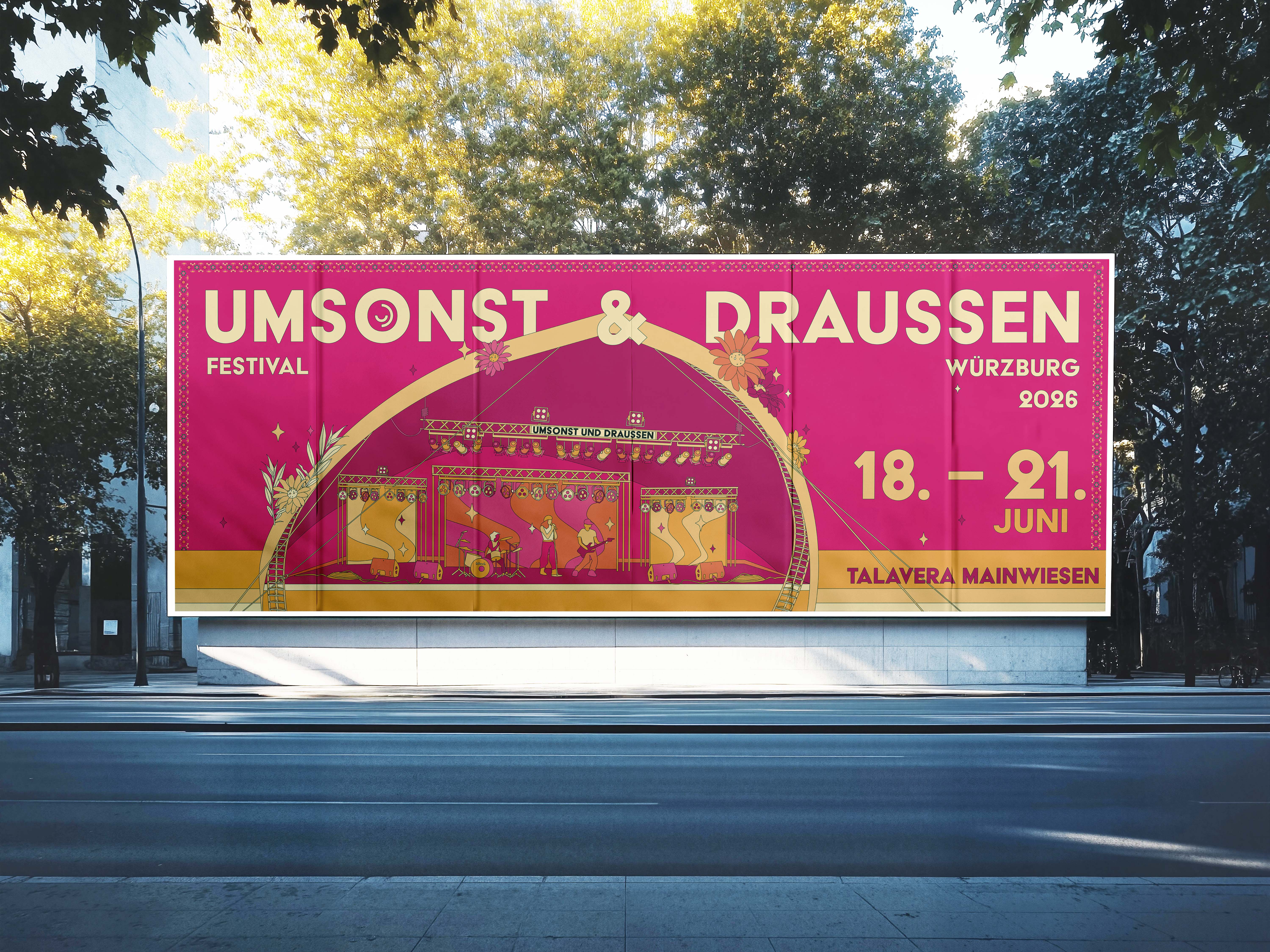 / projekte/ grafikdesign/ Umsonst und Draussen Entwurf 2/ Umsonst und Draussen Entwurf 2 Ein Entwurf für den Plakatwettbewerb des Umsonst und Draussen Festival Plakates 2025.