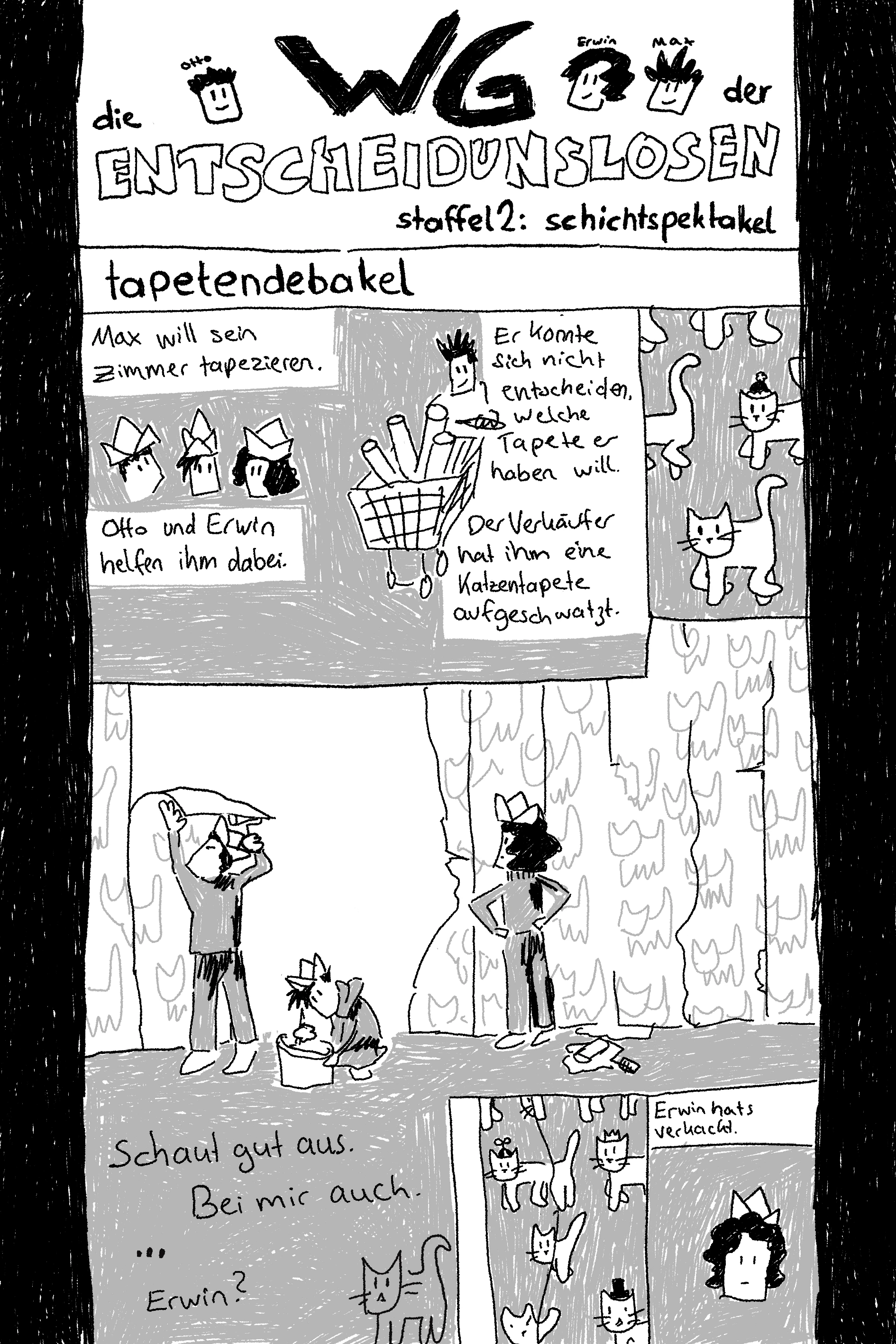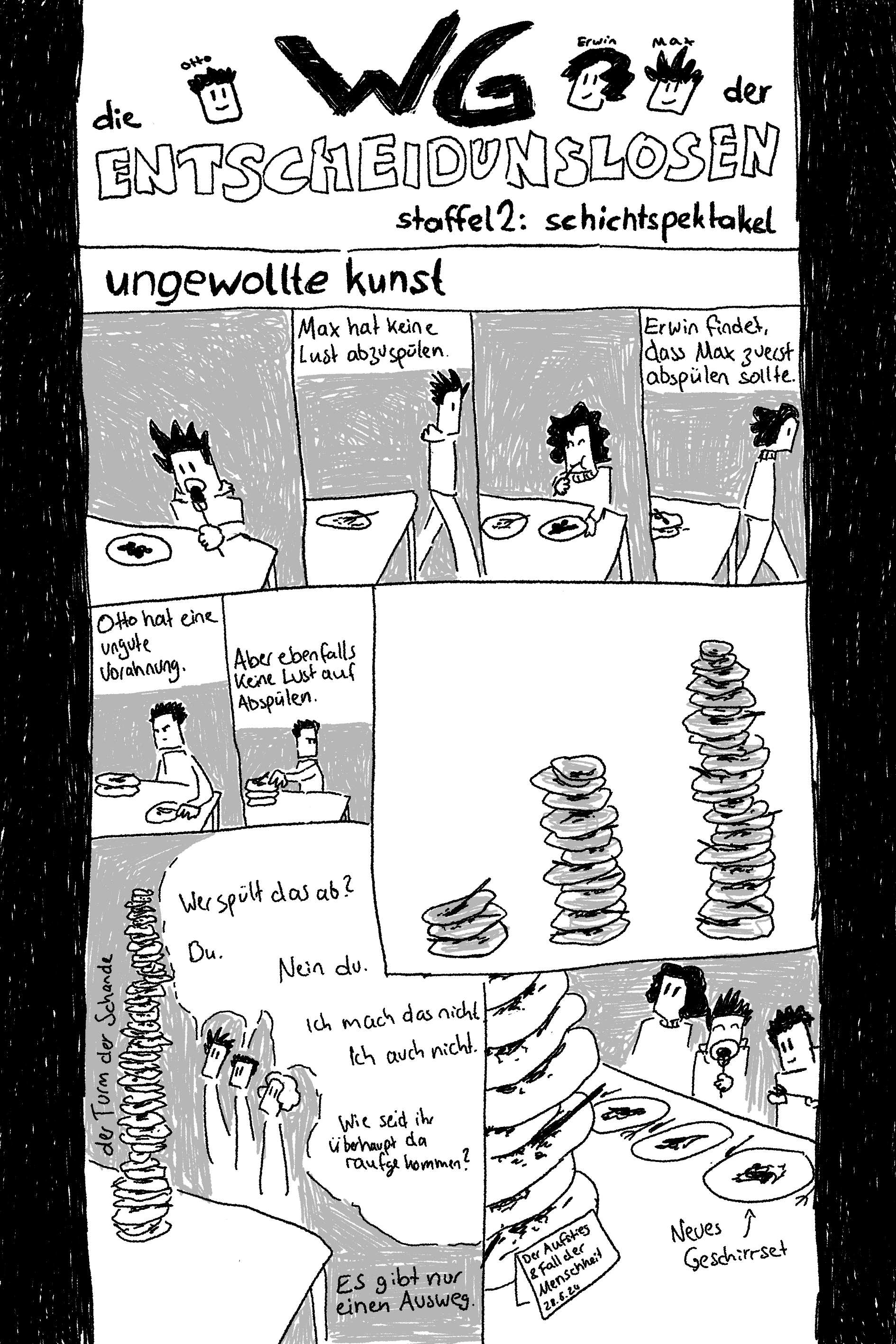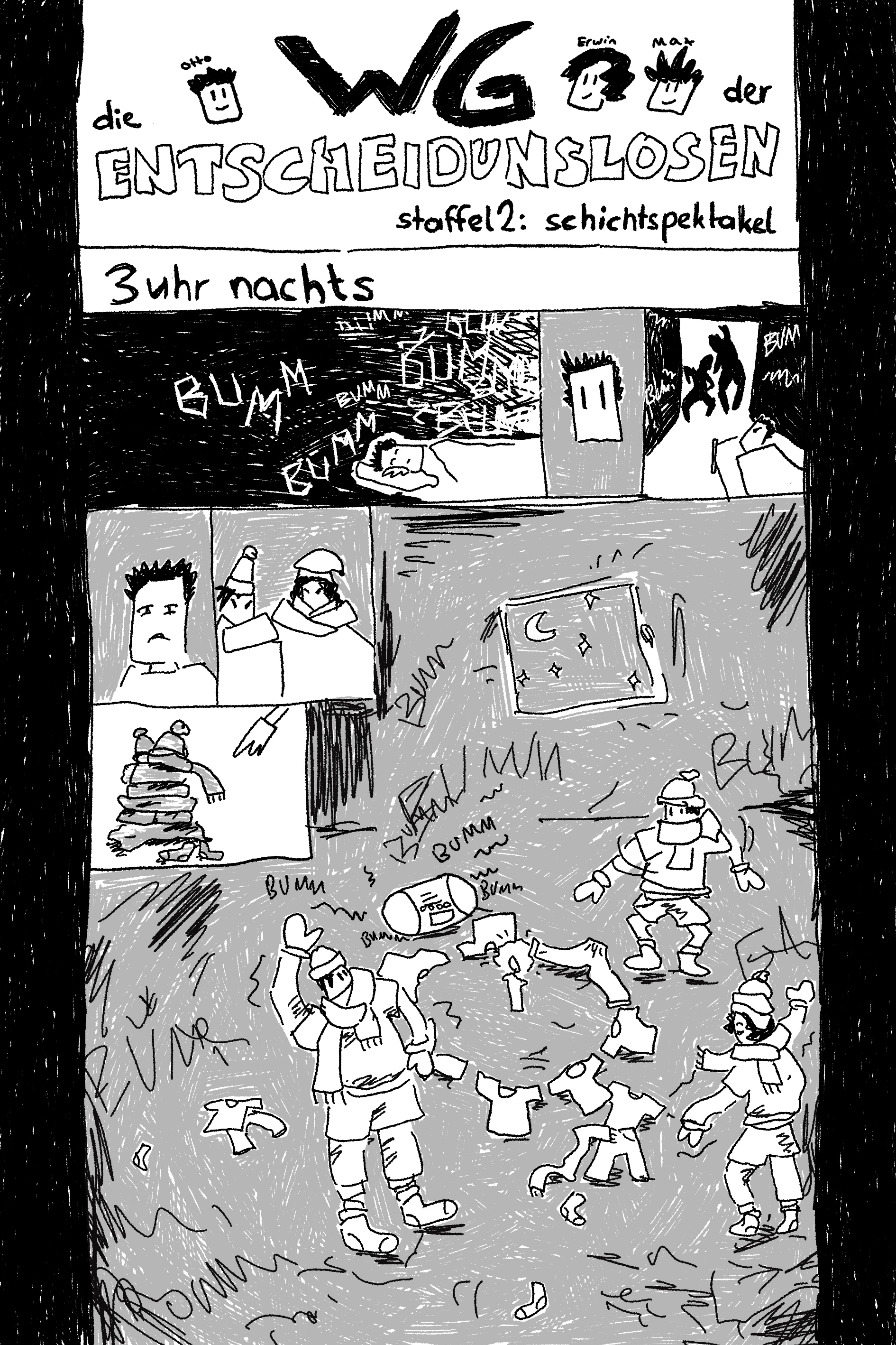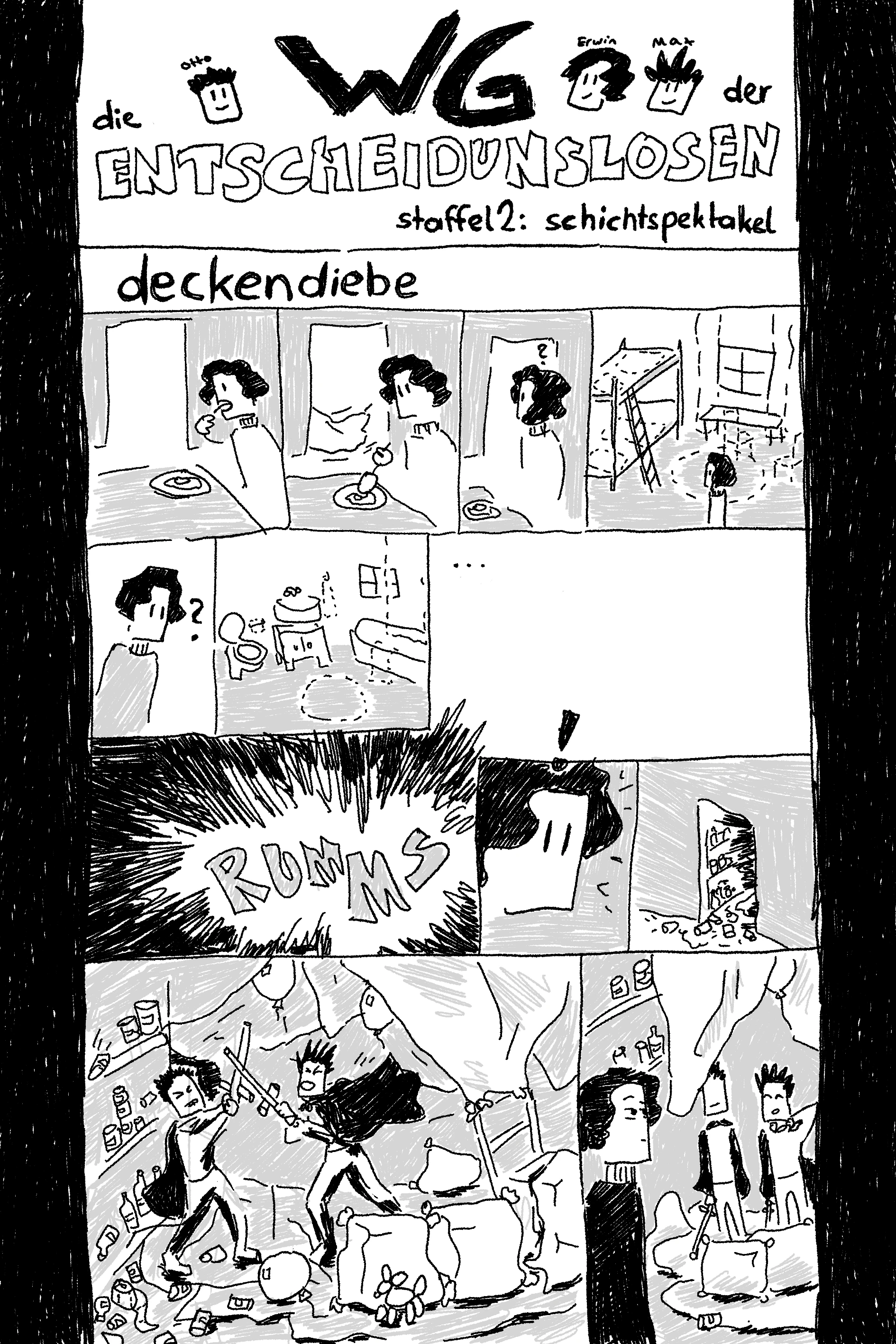 / projekte/ illustration/ Die WG der Entscheidungslosen/ Die WG der Entscheidungslosen Staffel 2/ Die WG der Entscheidungslosen Staffel 2 Eine Comicreihe für das Hochschulmagazin Luv und Lee über drei chaotische Mitbewohner.